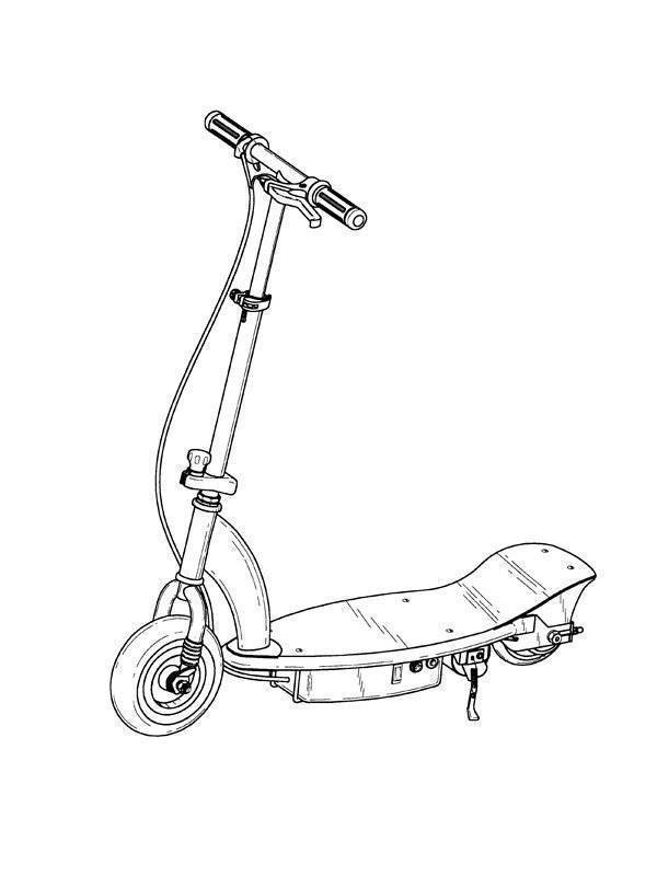 Распечатайте понравившиеся раскраски самокат для мальчиков. Черно-белые картинки-раскраски самокаты в хорошем качестве и примеры как раскрасить этот вид транспорта.