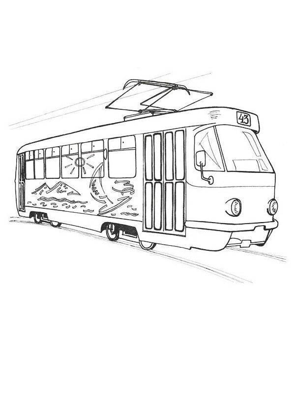 Распечатайте понравившиеся раскраски трамвай для мальчиков. Черно-белые картинки-раскраски трамваев в хорошем качестве и примеры как раскрасить этот вид транспорта.