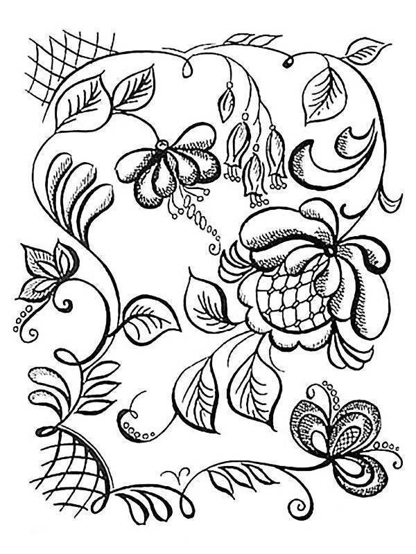 Распечатайте понравившиеся раскраски жостовская роспись для детей и взрослых. Черно-белые картинки-раскраски жостовская роспись в хорошем качестве и примеры как раскрасить.